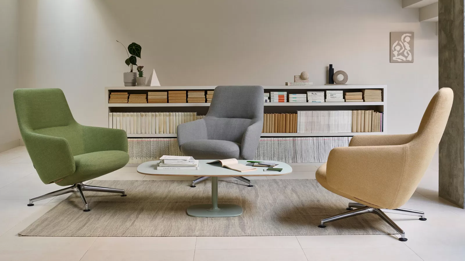 With a soft and welcoming aesthetic and weight-adjusted tilt mechanism, Balance Lounge allows you to transition smoothly from a reclined position...to a more upright position to enable focused work. Balance Lounge has been designed for a relaxed and welcoming environment to suit a more agile workspace.