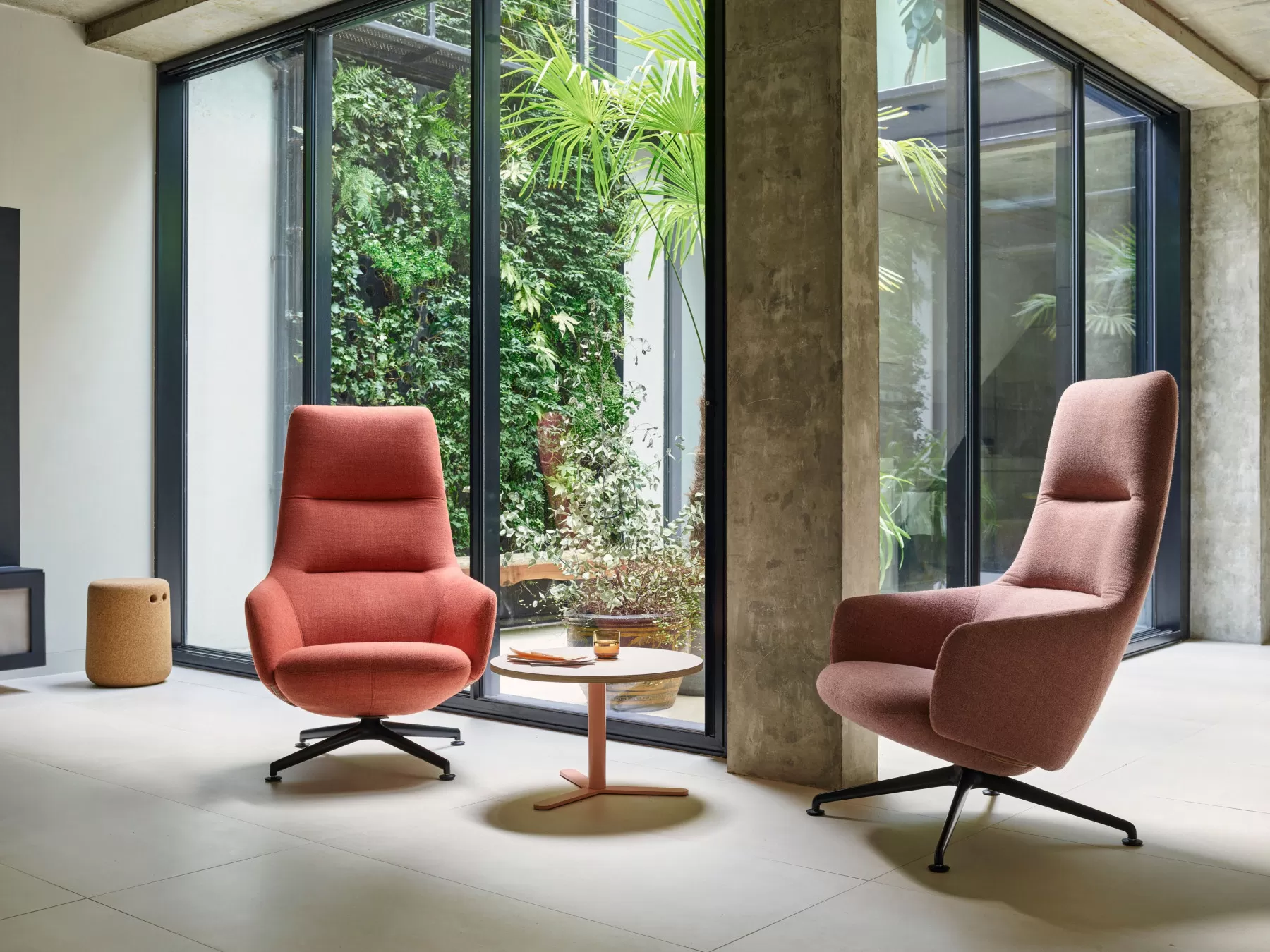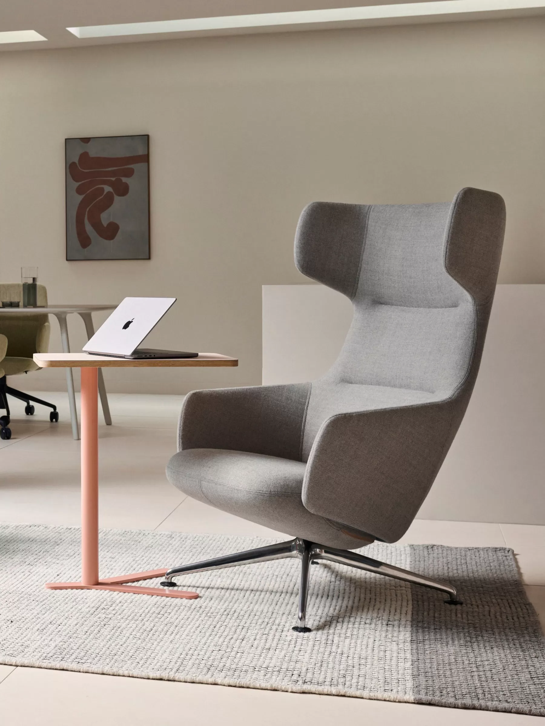 The classic contours of the wingback create a quiet, personal space to focus or relax. The high backs are ideal for a close conversation or taking a quiet pause in your working day. The low backs are perfect for impromptu meetings, relaxed gatherings between colleagues.