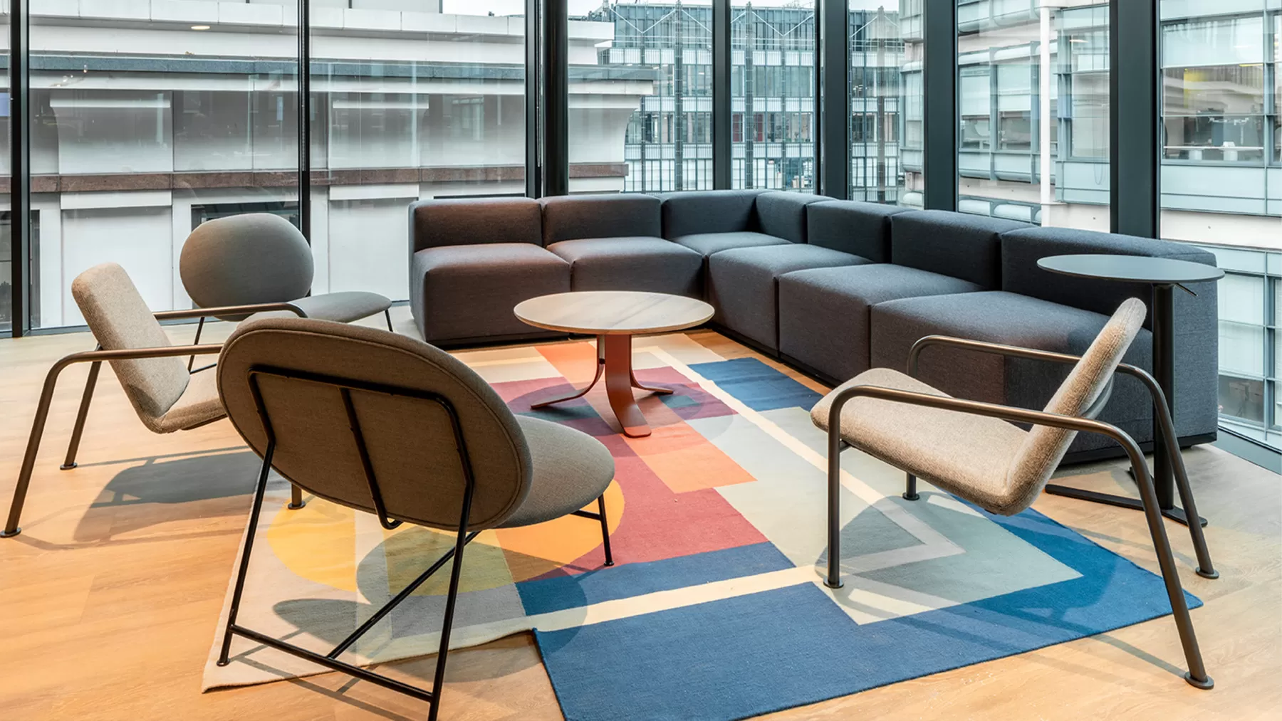 We worked with Hunters Contracts and architects MCM on a new hybrid working environment for global media company Mediabrands. 16 Old Bailey was chosen as their new inspiring, people-focused HQ and is now home to eight distinct brands and 1000 creatives. A selection of products were chosen from our collection including the Michael stool, Richard chair, Geta sofa, Lily chair, Spring table and our cheeky little Bob stool.